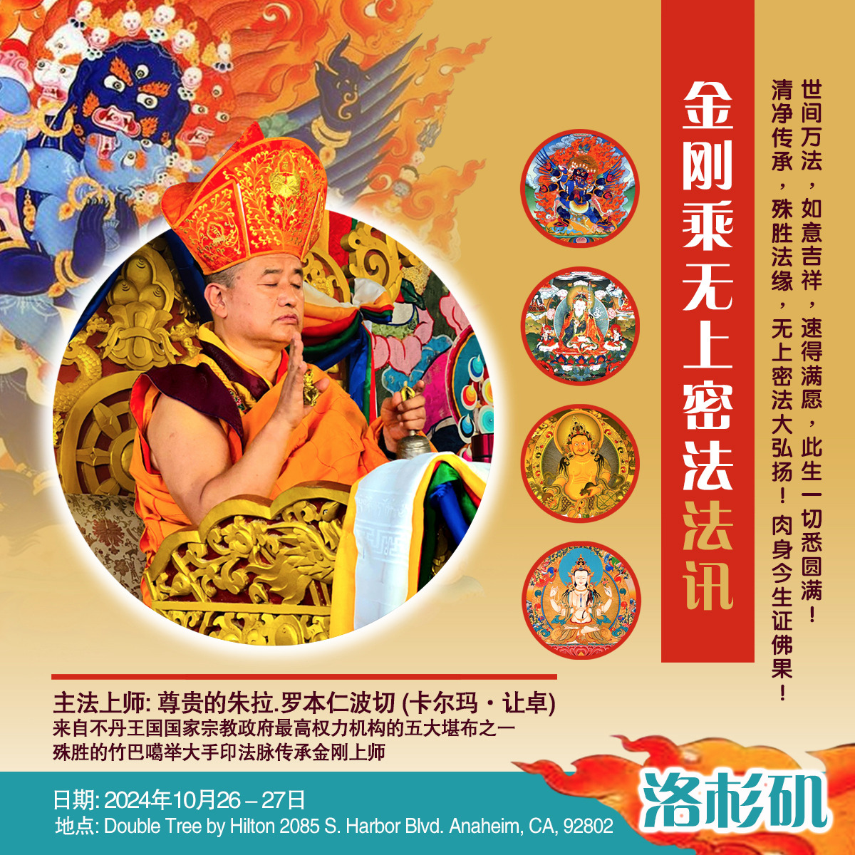 In response to earnest requests, out of his boundless compassion, Tsugla Lopen Rinpoche has graciously agreed to travel across the oceans to Toronto, bestowing the supreme esoteric Dharma empowerments and blessings upon the destined public.This is a rare and precious opportunity in a lifetime.